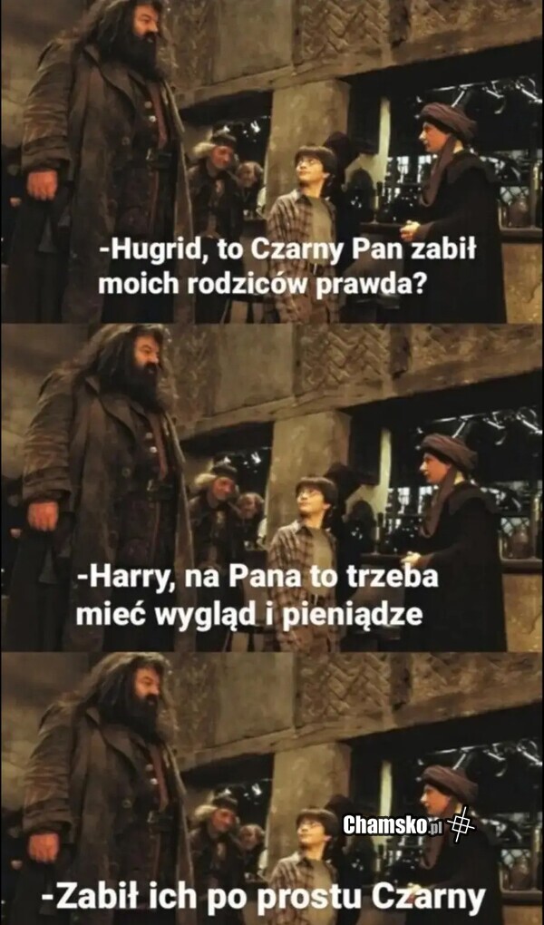 No tam, ksywka "Czarny" nie wzięła się z tego powodu, że zabójca rodziców Harrego miał naprawdę śniadą cerę (w ekranizacji gościu wręcz blado wyglądał), tylko w takiej ciemnej pelerynie chodził, miał unikalną różdżkę, rozszczepił swoją duszę na kilka części (horkruksy) i ogólnie uchodził za mistrza czarnej magii :) :(