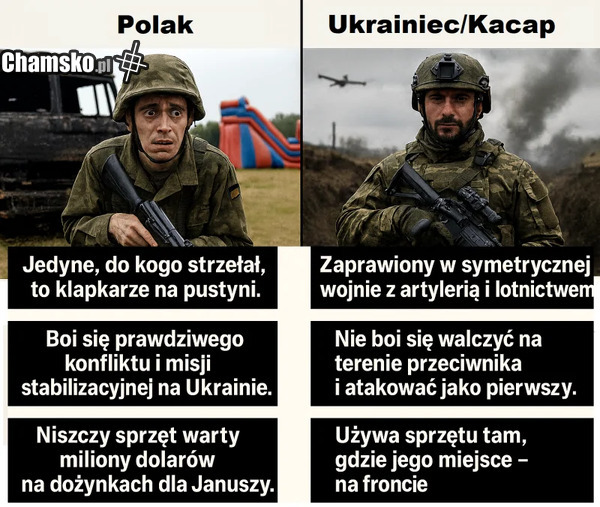 Kurwa nie no to już jest tak słabe, że chuj. Przecież kacap to ruski, a nie Ukrainiec. Powinno być Ukrainiec/banderowiec albo Ukrainiec/ukrop bo tak na nich ruskie mówią.