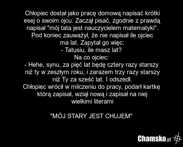 @Filipoksxd2137: Dokładnie, wyszło mi to samo, czyli nie mamy tu do czynienia z chłopcem, ale raczej studentem, młodym mężczyzną, a ojciec może być najwyżej emerytowanym nauczycielem.
