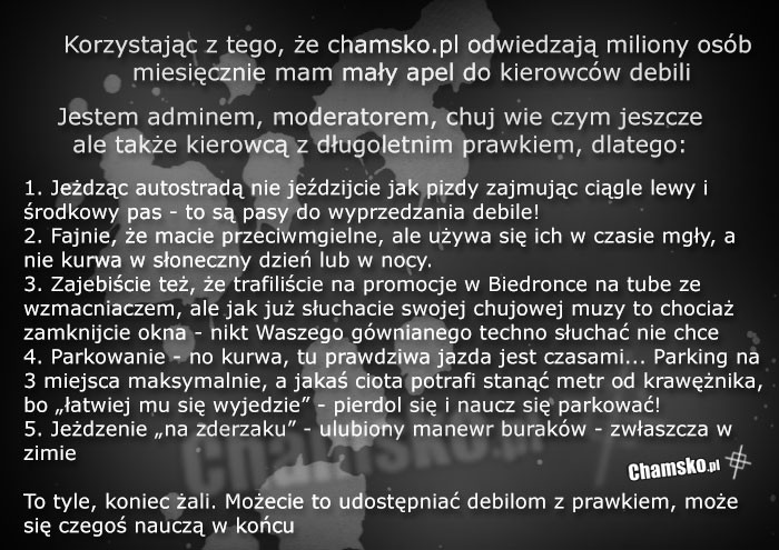 Apel do kierowców debili