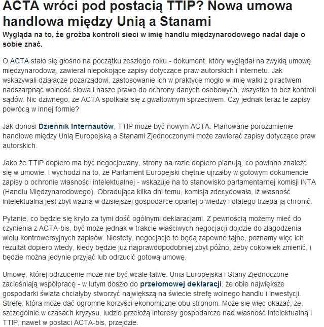 ACTA powraca