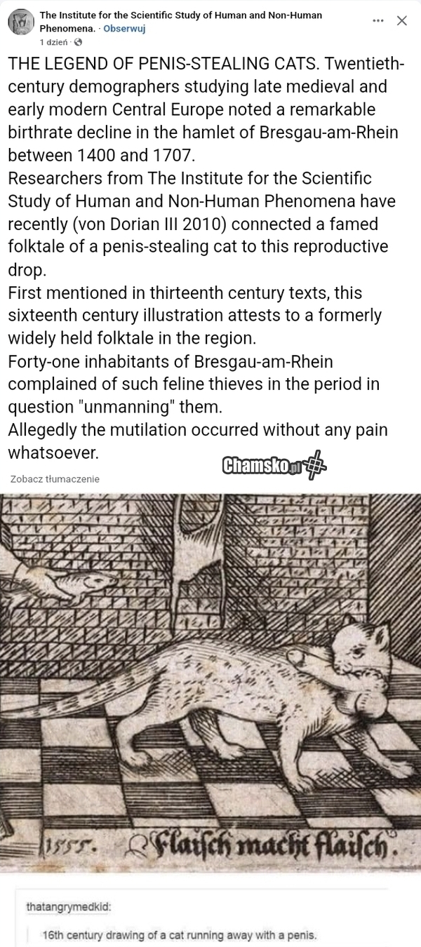 Średniowieczna legenda o kocie kradnącym kutasy.